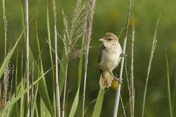 松村さんの早朝散歩より 修景池では、カイツブリの営巣場所は確認できず。オオヨシキリが葦・紅葉にとまり存在を主張し始めていた。